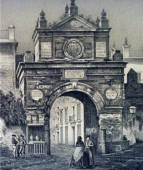 Fue reconstruida en 1577 por orden del asistente Francisco de Zapata, Conde de Barajas. En el año 1696 se le practicó una notable obra para remediar graves defectos que contenía. Estaba compuesta por un alto y robusto arco moldurado y de un frontispicio sencillo y severo. Bajo dicho arco, y por la parte interior, existía una tribuna con altar. Finalmente fue demolida en 1864.