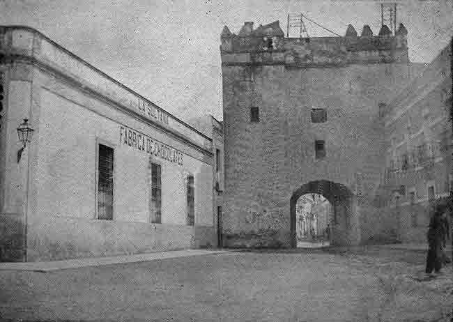 La denominación tiene una explicación basada en la legendaria existencia de un cementerio almohade a extramuros en esta zona de Sevilla. La puerta era baja y sin ornamentación, estando flanqueada por dos torres almenadas. En su interior había una pequeña capilla con un altar dedicado a la Virgen del Rocío, con una pintura donde se representaba a la misma.