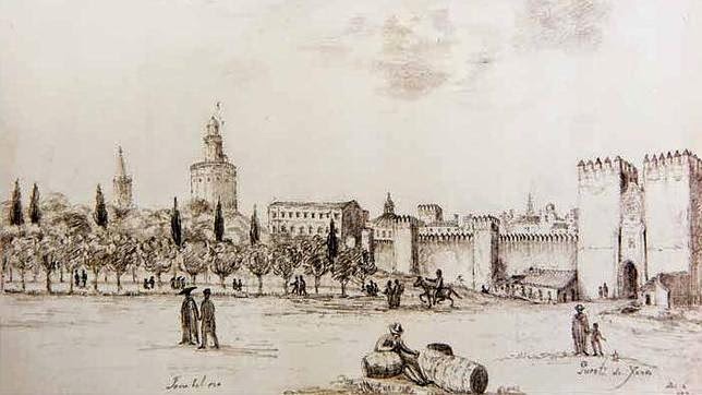 La destrucción de las murallas sevillanas comenzó en 1830, cuando se procedió al derribo de la coracha que enlazaba la Torre del Oro con el circuito amurallado principal, con objeto de prolongar el llamado Paseo del Río y de crear los jardines de Las Delicias y el salón de Cristina. Pero desgraciadamente, fue el 22 de enero de 1867 cuando se produjo el grueso de su derribo, arrasando los lienzos que se extendían entre la Puerta del Sol y la Puerta de Córdoba. Esta decisión del Ayuntamiento era contraria a la opinión de la Comisión Provincial de Monumentos que intentó, sin éxito, frenar la demolición.