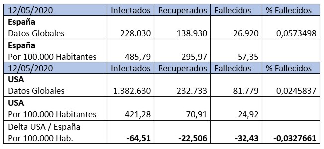 Uno muy evidente es el uso de los datos estadísticos que los “poderosos” (gobernantes, grandes empresarios, corporaciones) hacen para manipular la información a favor de sus objetivos. Es habitual que de los USA pongan la atención sobre las cifras globales, comparándolas con las españolas, cuando su población es siete veces superior y omitiendo aquellos porcentuales por números de fallecidos e infectados por cada 100.000 habitantes.