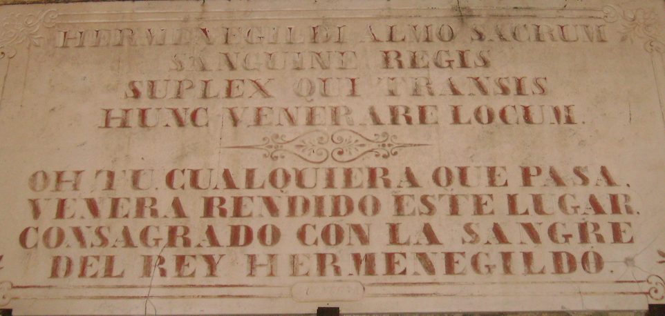 En la iglesia de San Hermenegildo, sita en la Ronda de Capuchinos anexa a la Puerta de Córdoba, se puede ver una lápida de mármol, a baja altura, que en latín y castellano nos indica: