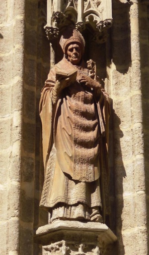 Su gran importancia histórica para la iglesia se hace patente en la estatua de barro cocido a tamaño natural que le representa en la Puerta del Bautismo de la Catedral de Sevilla, frente a la de su hermano y también obispo de Sevilla, San Isidoro. Aparecen juntos a su vez en el escudo de Sevilla.